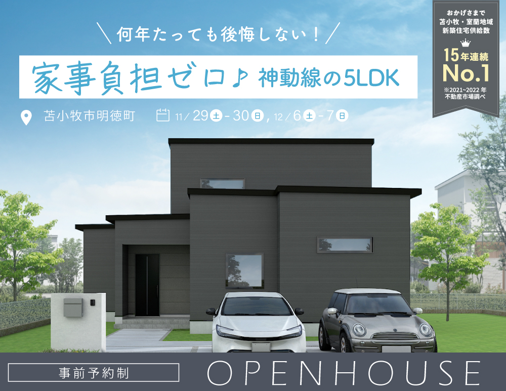 【お客様邸見学会】欲しかったのは、何年たっても後悔しない家。家事負担ゼロ♪神動線の5LDK見学会|11/29(土)-12/7(日)苫小牧市明徳町で完成見学会