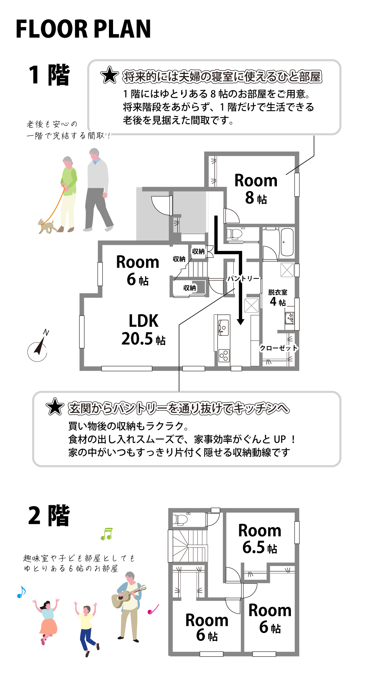20.5帖のリビングは隣の6帖のお部屋とつなげて贅沢に使えます。
