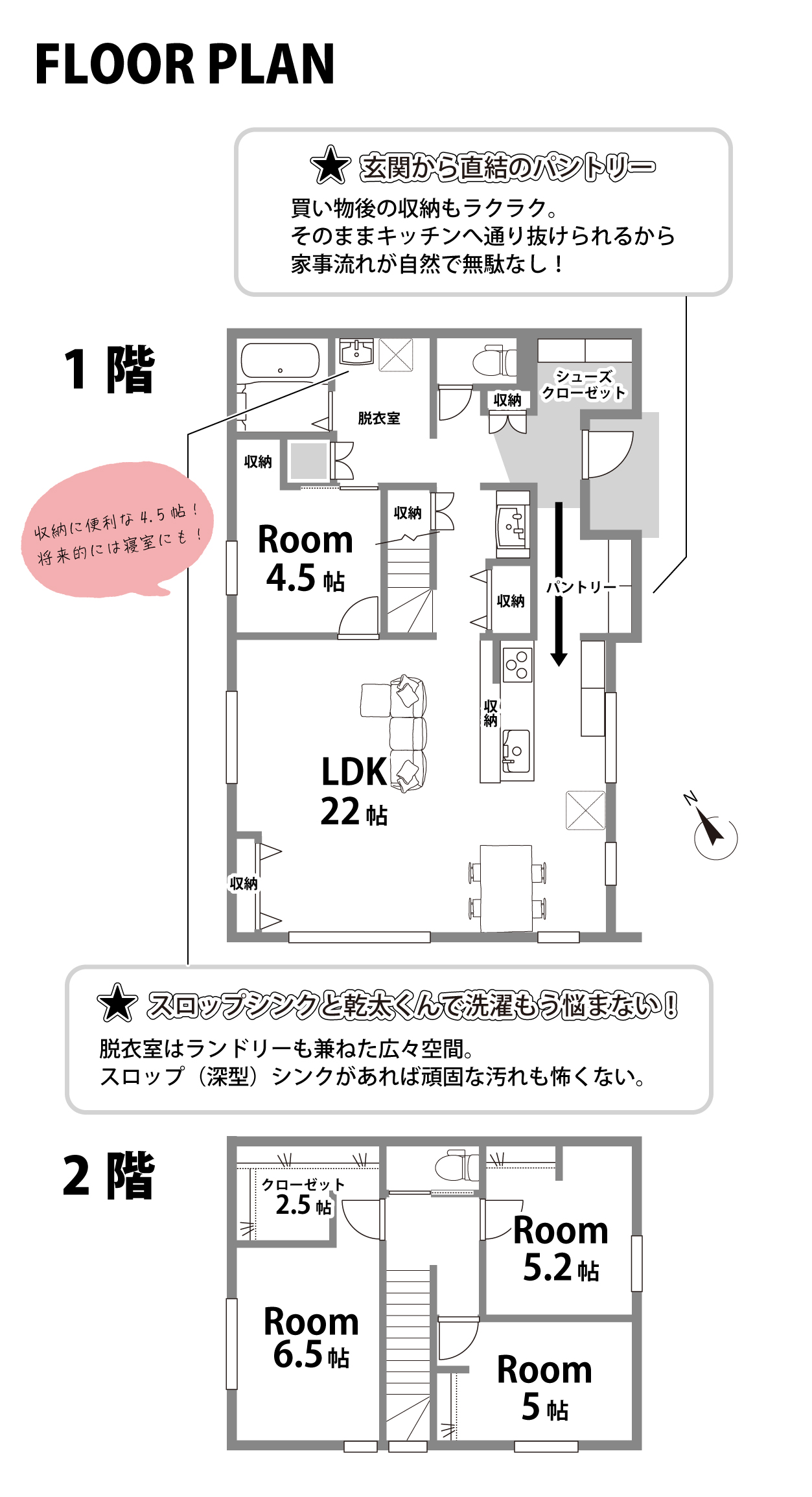 お隣にはマルチに使える4.5帖のお部屋があるから、いつでもスッキリと過ごすことができます。