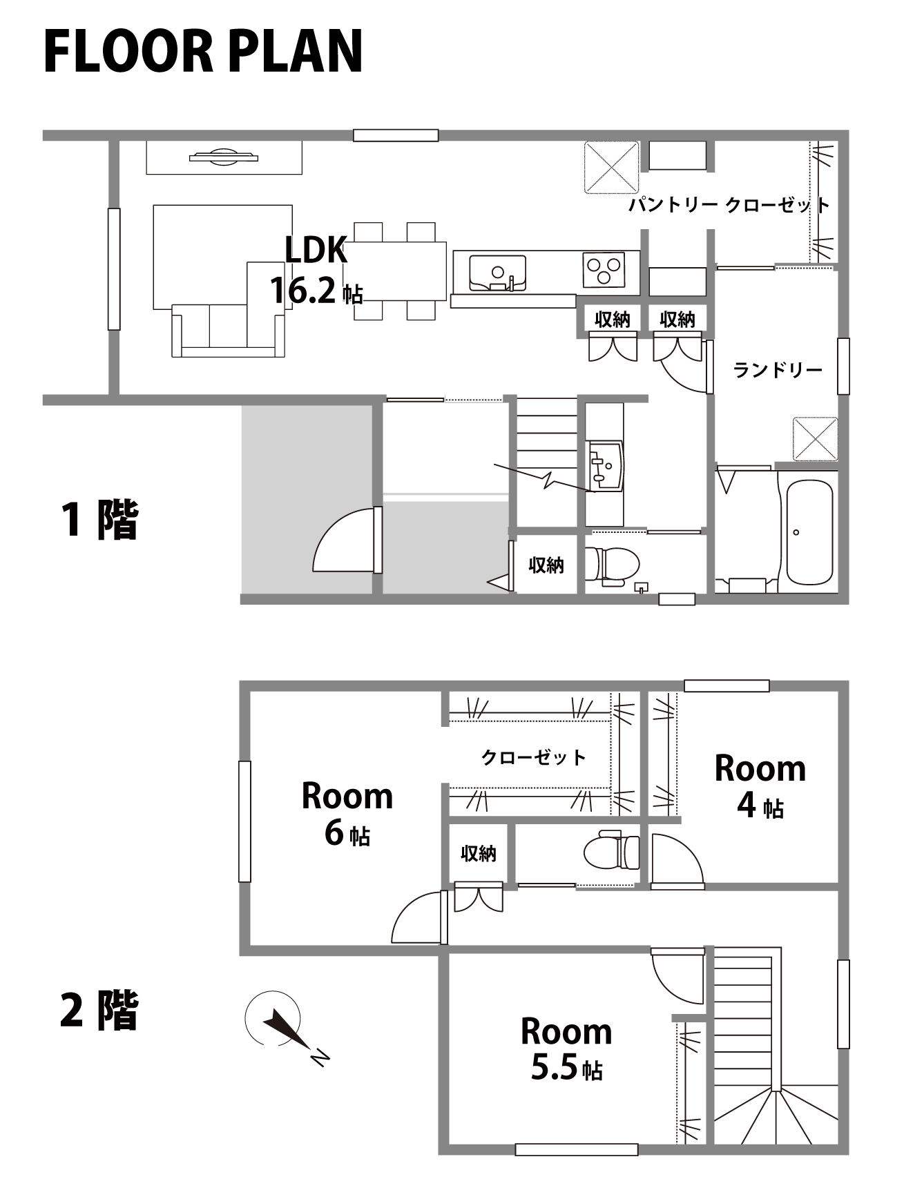 パントリー・リビング収納・玄関収納・各部屋クローゼット完備で収納充実。